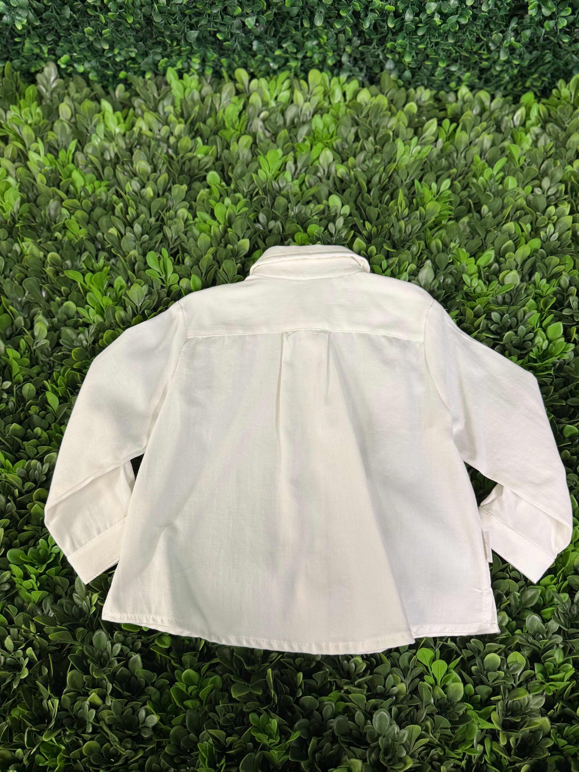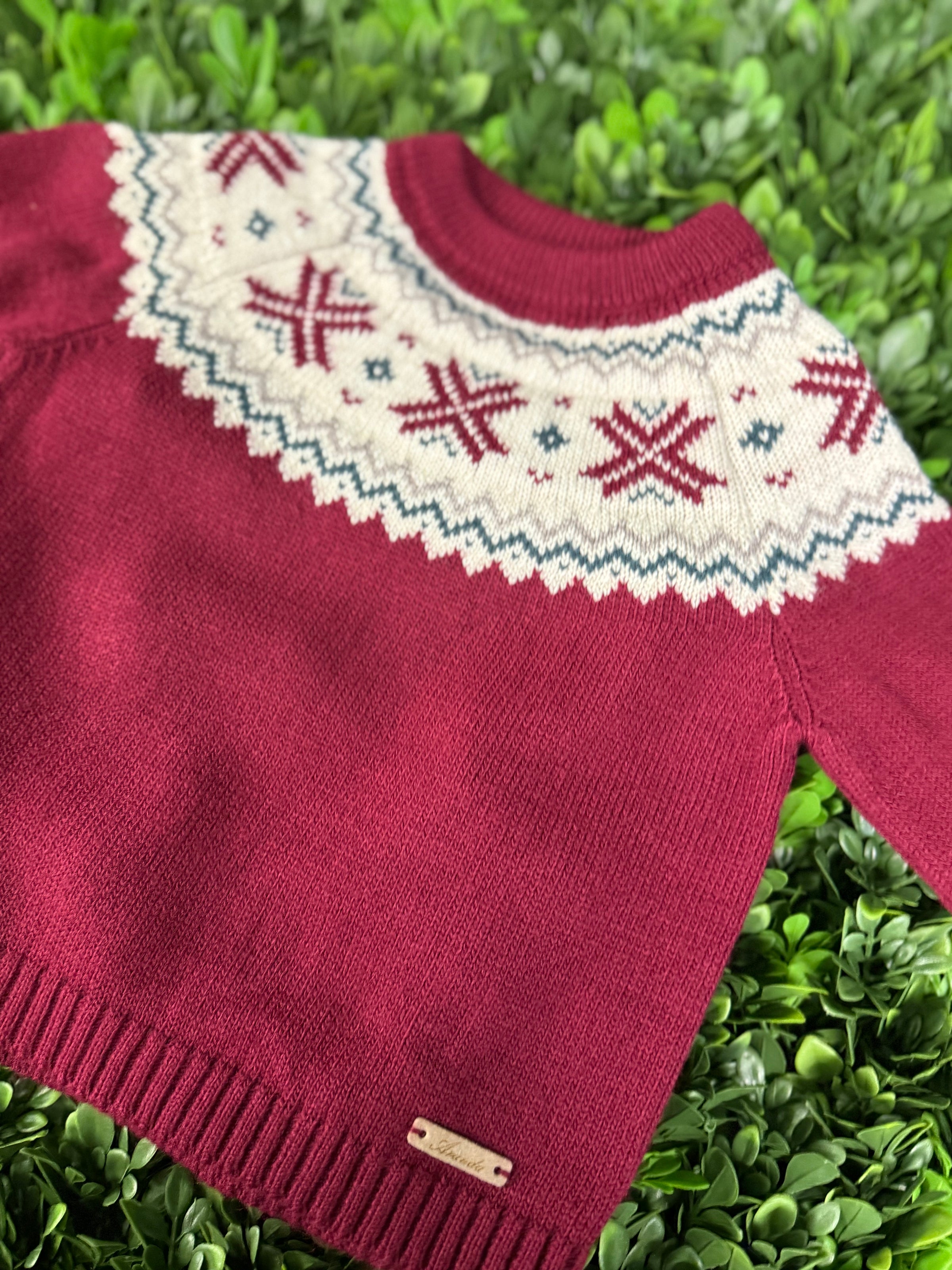Made in Spain by Martin Aranda! Great 3 piece knit set for your little one. It features a red pattered knit sweater top, soft collared button up and navy corduroy pants.  Pants are adjustable at the waist.  Could be worn together or separately!
