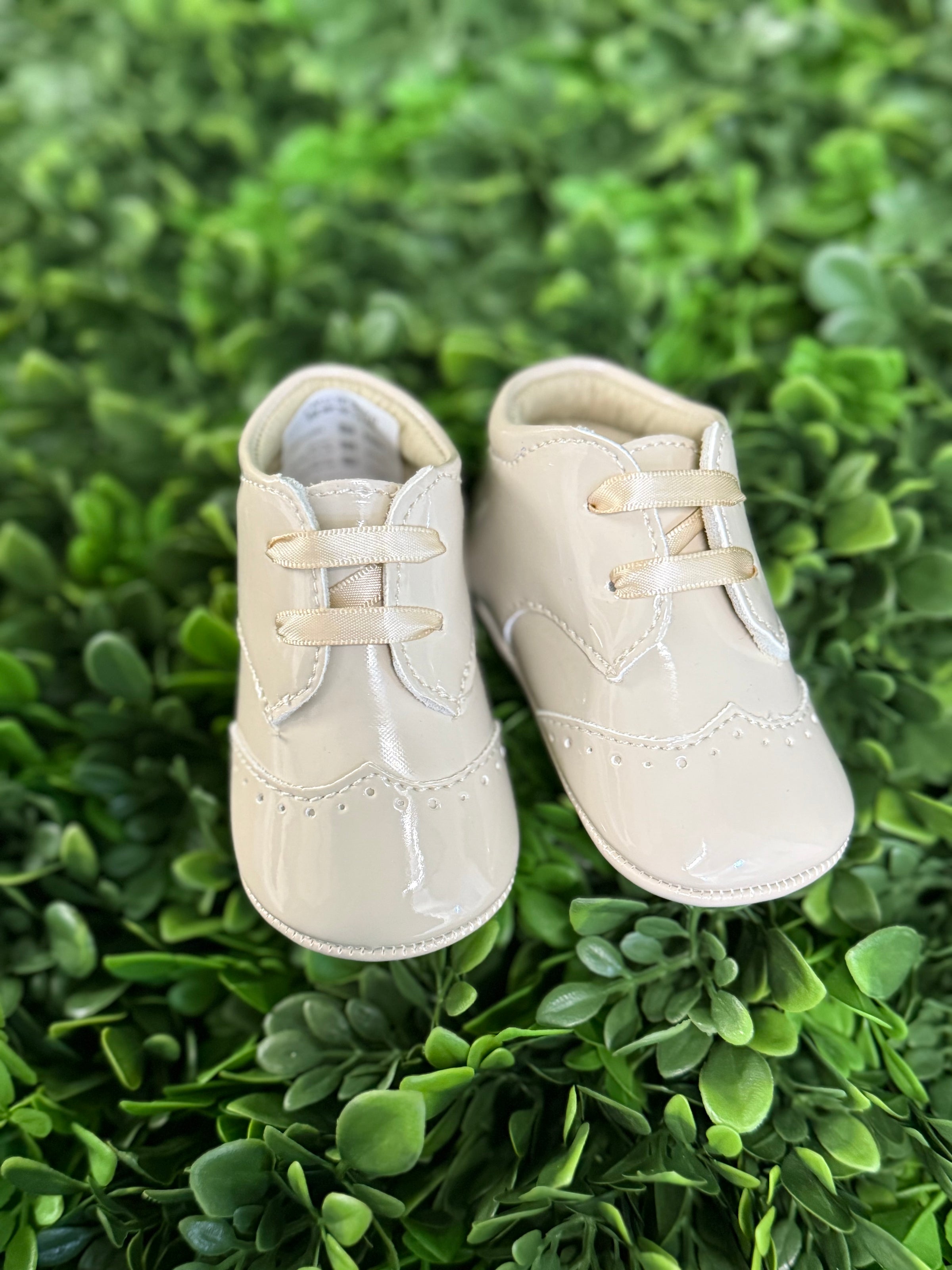 Michelina Bimbi Boys’ Pantent Wingtip Taupe Shoes