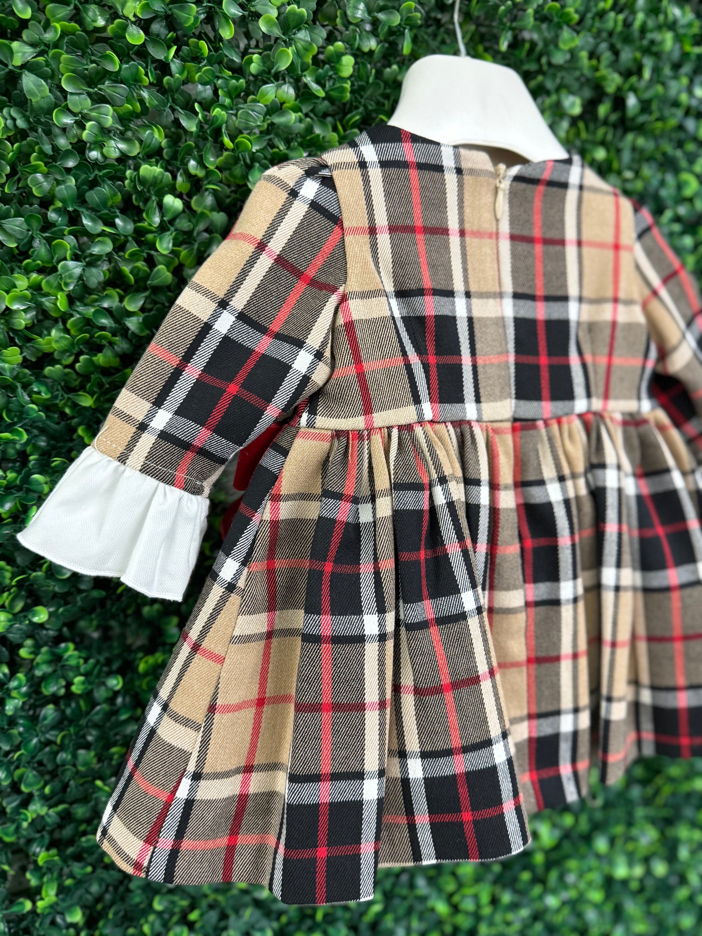Michelina Bimbi Girls’ Tartan Check Patterned Flounce Sleeve Dress