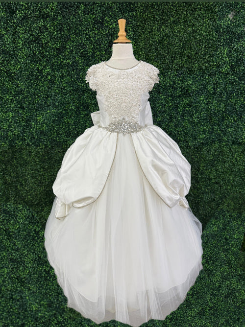 Macis Design Macis Design Pleated Satin Communion Long Gown with Tulle Cascade Skirt 1941- Regular Price