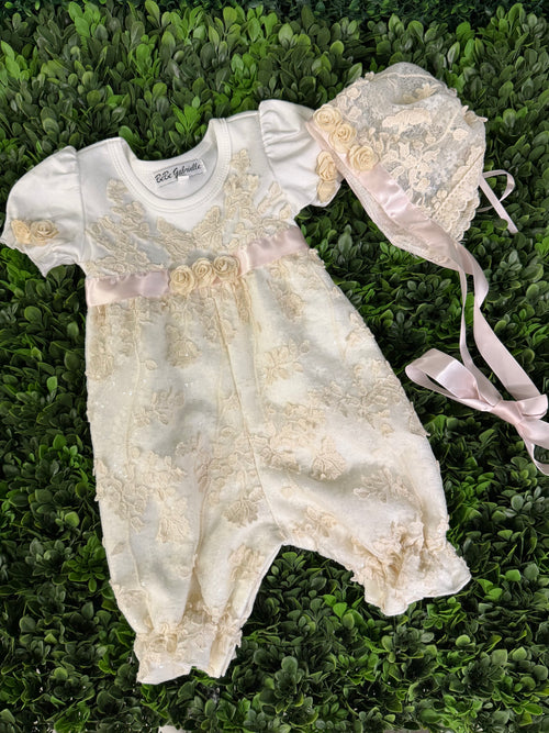 Bebe Gabrielle Girls’ Lace Rossette Changing Romper 3862-2