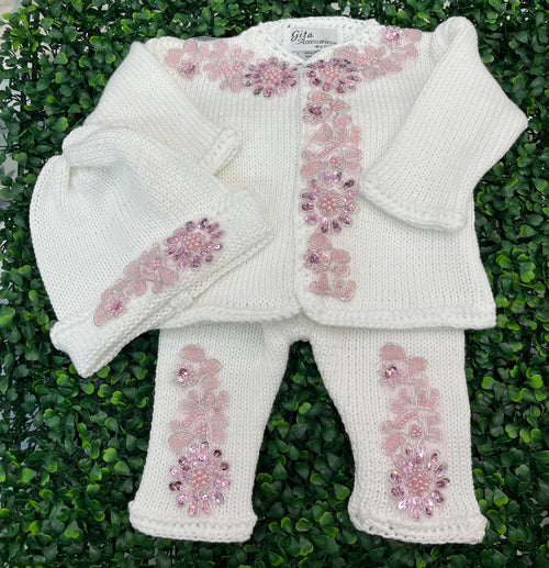 Cotton Knit with Floral Applique Sweater Set and Blanket