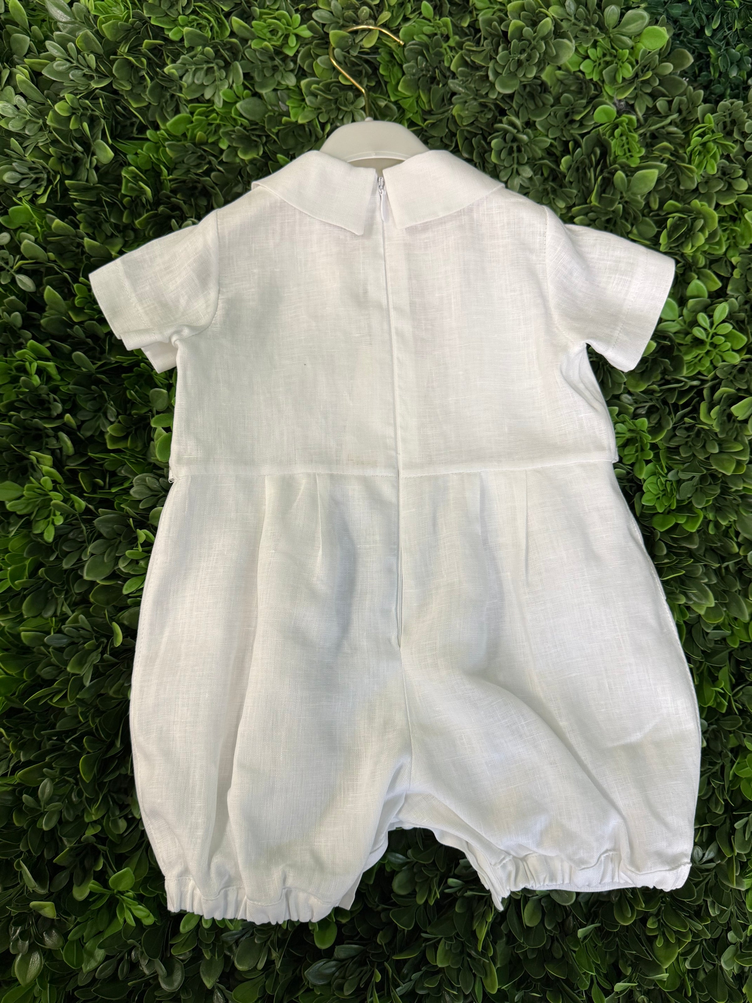 Bimbalo Boys' Linen Subtle Accent Embroidered Romper and Hat