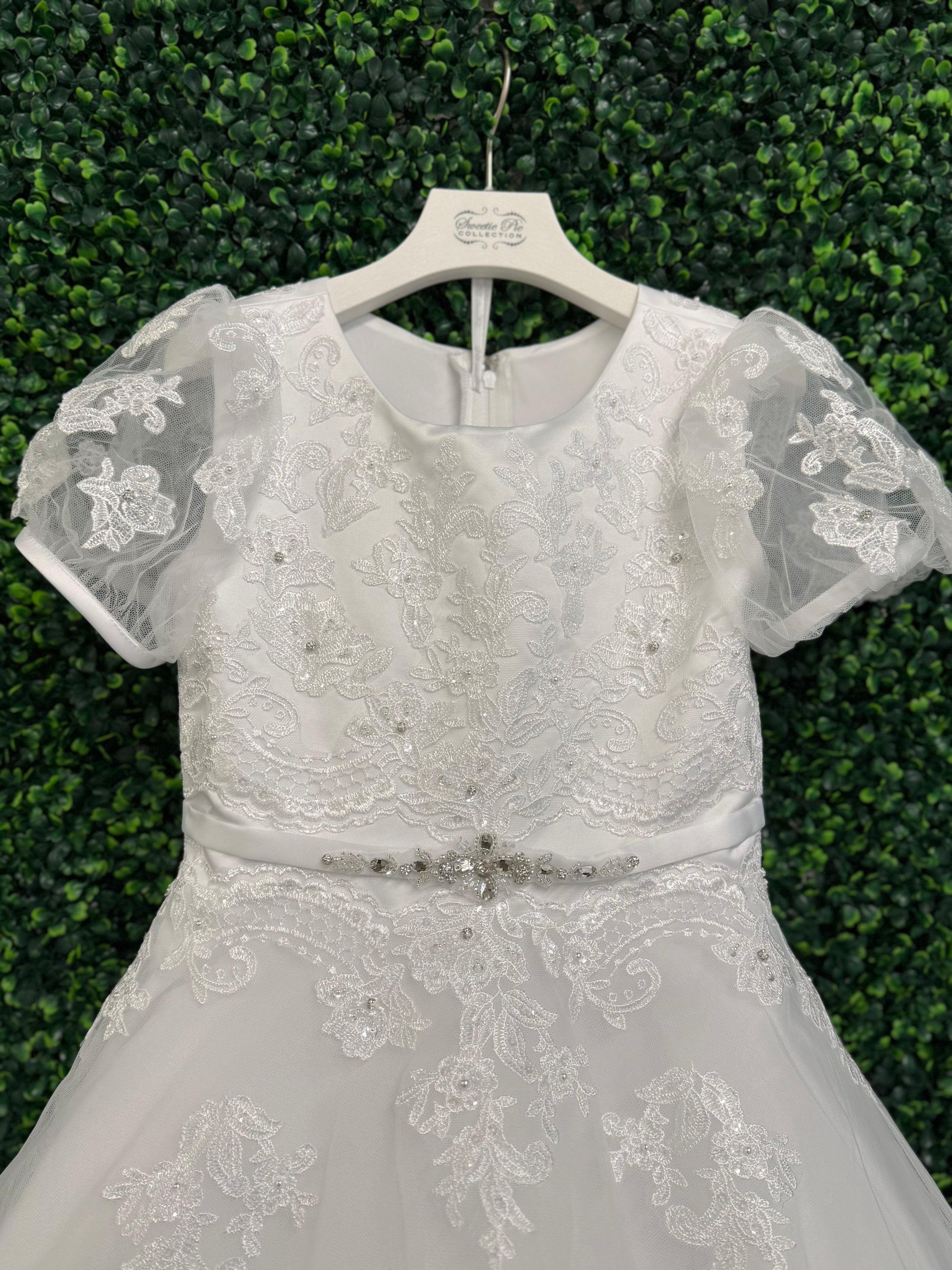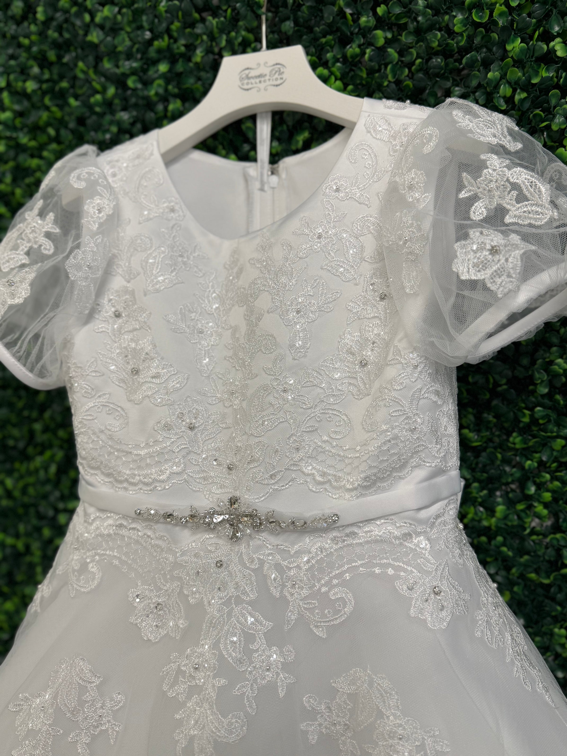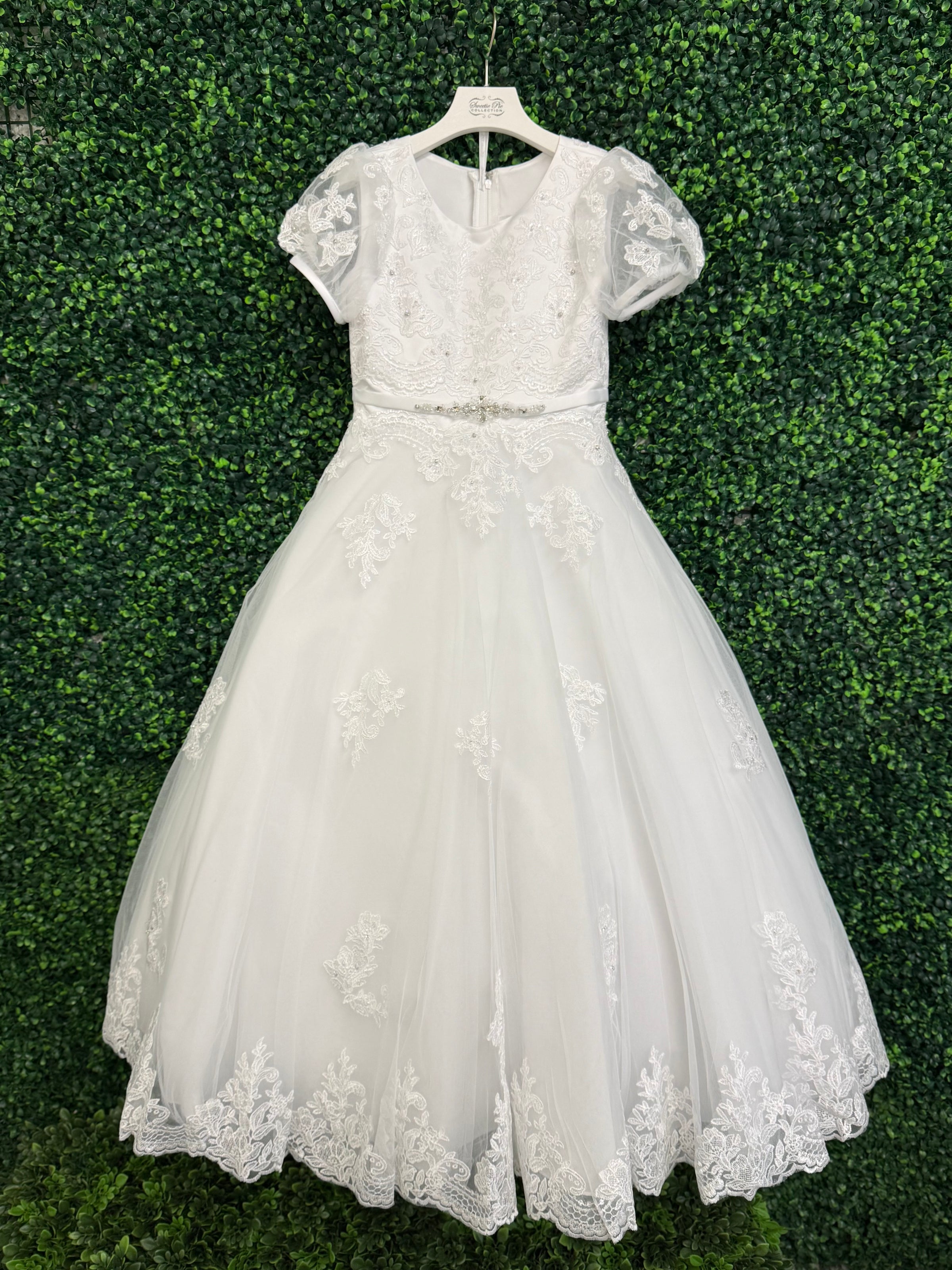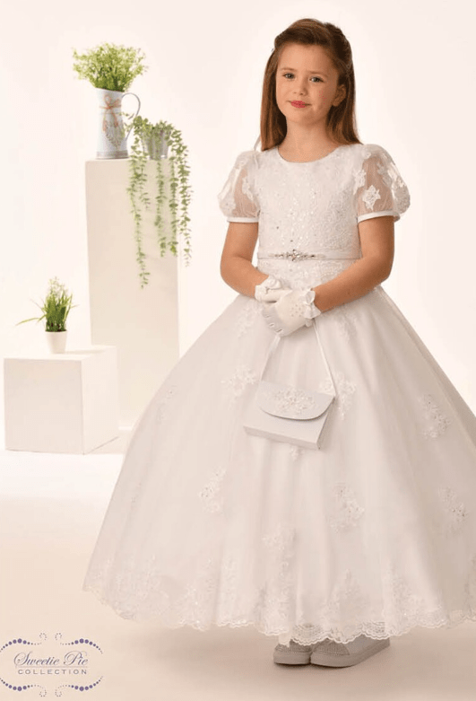 Sweetie Pie Puff Sleeve Lace Applique Gown 5011